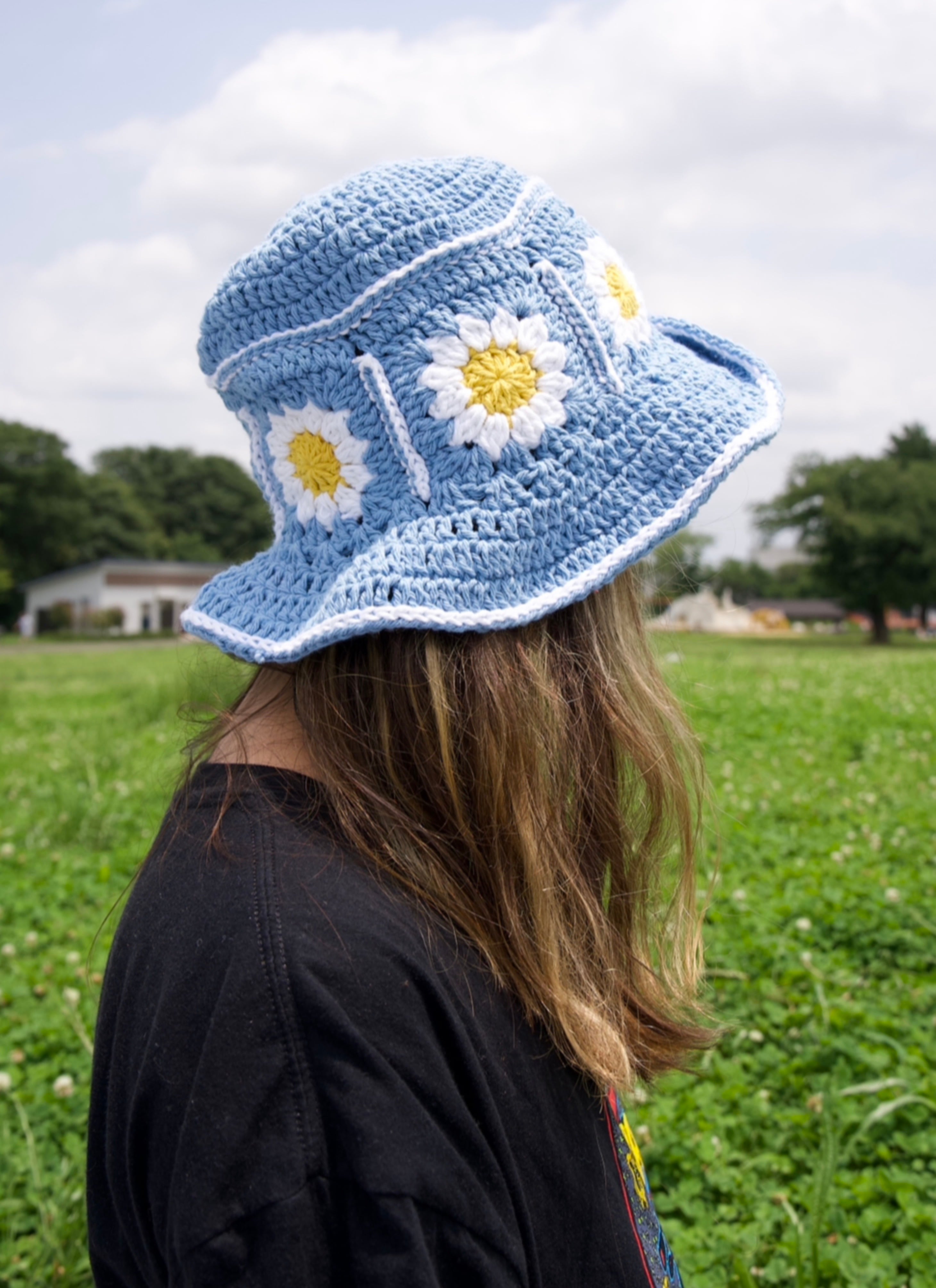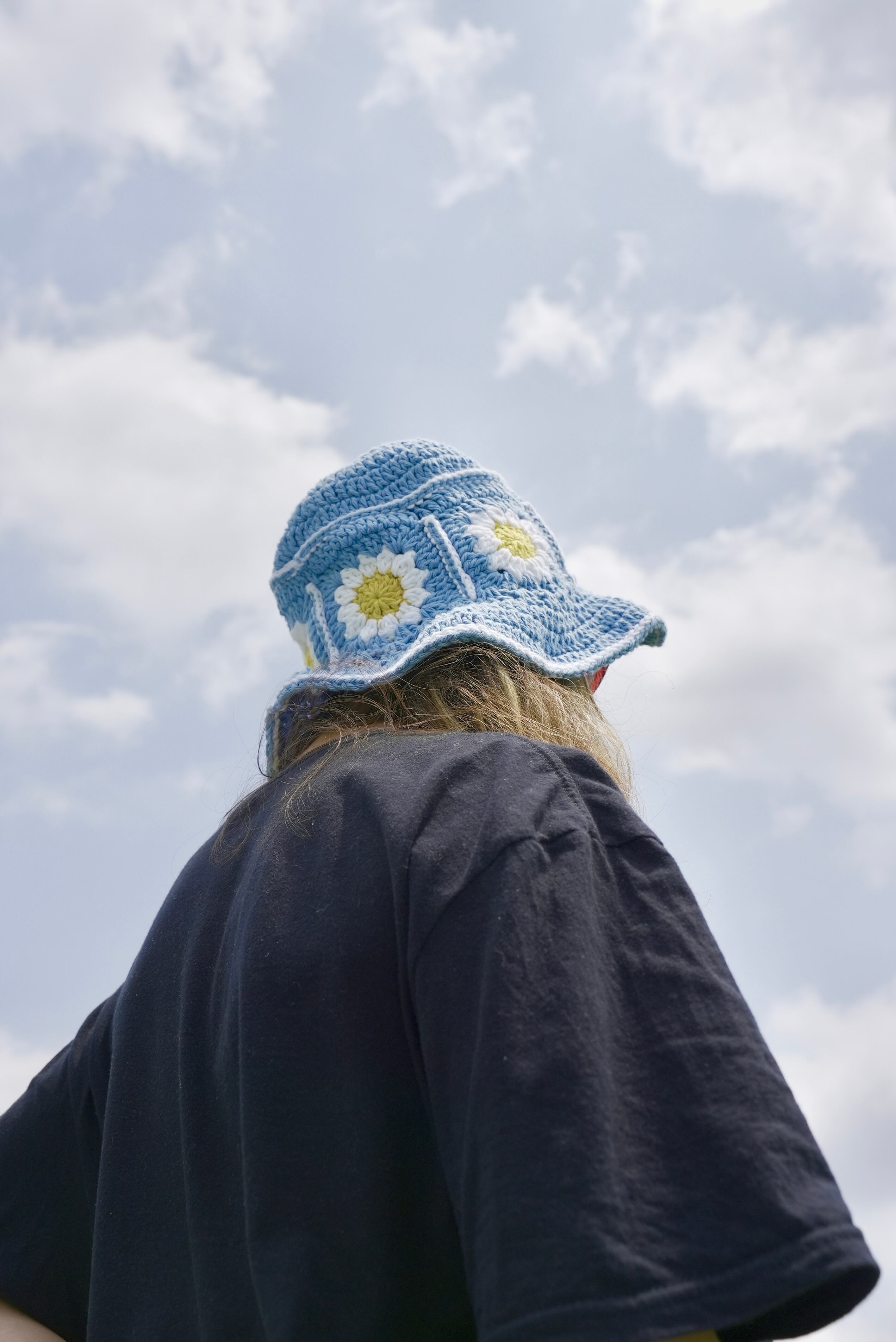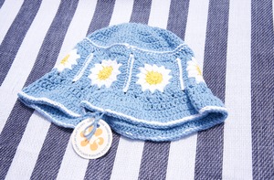 Super High Quality 手編みのバケットハット Hand Crocheted Bucket Hat - BLUE DAISY